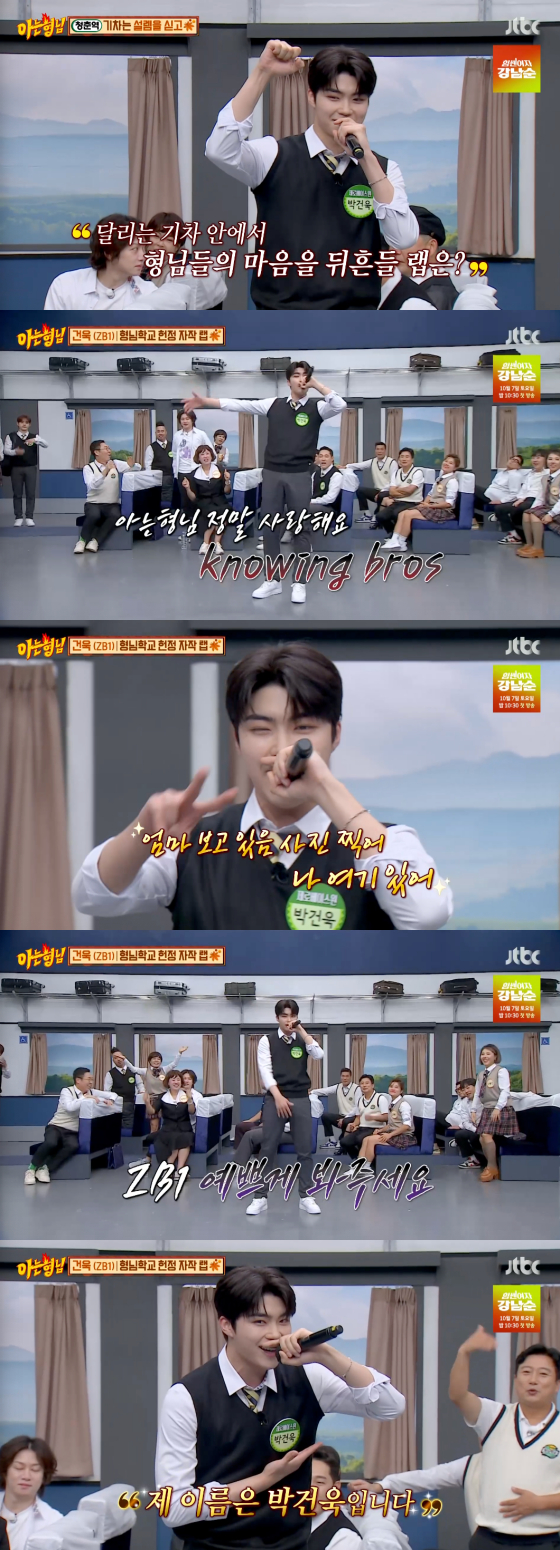 박건욱은 자작랩에 이어 김지웅과 함께 커버 댄스 무대를 선보였는데, 춤을 시작하자마자 마이크가 떨어지고 말았다. 박미선은 이에 바로 무대를 중지시키더니 재공연을 요청해 웃음을 자아냈다. 형님들은 "소속사 대표로 온 거 아니냐", "나 신인 때는 한 마디도 안 걸어줬는데"라 말해 폭소를 자아냈다.
