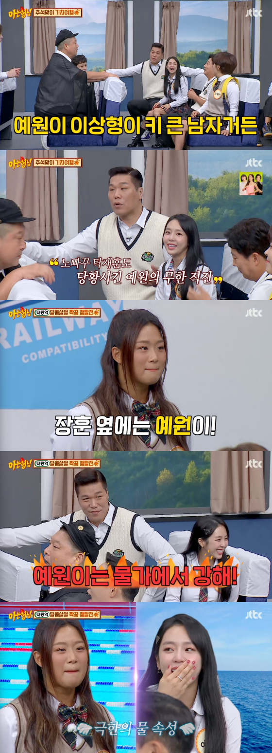 이어 김혜선과 스포츠 스타 모태범, 유희관, 정유인이 등장했다. 정유인은 예원이 앉아 있는 서장훈의 옆자리에 앉고 싶다며 "나는 장훈이 개인 카드도 받았다"고 밝혀 놀라움을 자아냈다. 박미선은 이에 "예원이랑 싸울 수 있냐. 예원이 찰지다"고, 김희철은 "유인이는 물 속에서 강하고 예원이는 물가에서 강하다"고 말해 폭소를 유발했다. 예원은 결국 서장훈의 옆 자리를 사수했다.