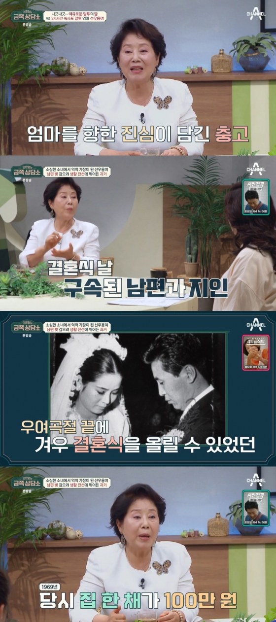 이날 선우용여는 연예인 중 처음으로 혼전임신을 했다고 밝혔다. 그는 "우리 집안에서 남편을 반대했다. 나이도 열 살 연상이고, 8남매 중 장남이었기 때문"이라며 "부모님이 결혼 인사를 거절하니까 남편이 그 길로 호텔로 날 데려갔다. 20일 동안 거기서 신혼 생활을 했고, 우리 딸이 거기서 생긴 거다. 당시에는 임신하면 곧 결혼해야 하는 분위기였다. 결혼 당시 임신 4개월이었는데 강부자 언니가 '너 점점 예뻐진다'라고 하더라. 나중에 속뜻을 알게 됐는데 임신하고 딸을 가지면 예뻐진다고 한다"고 말했다.