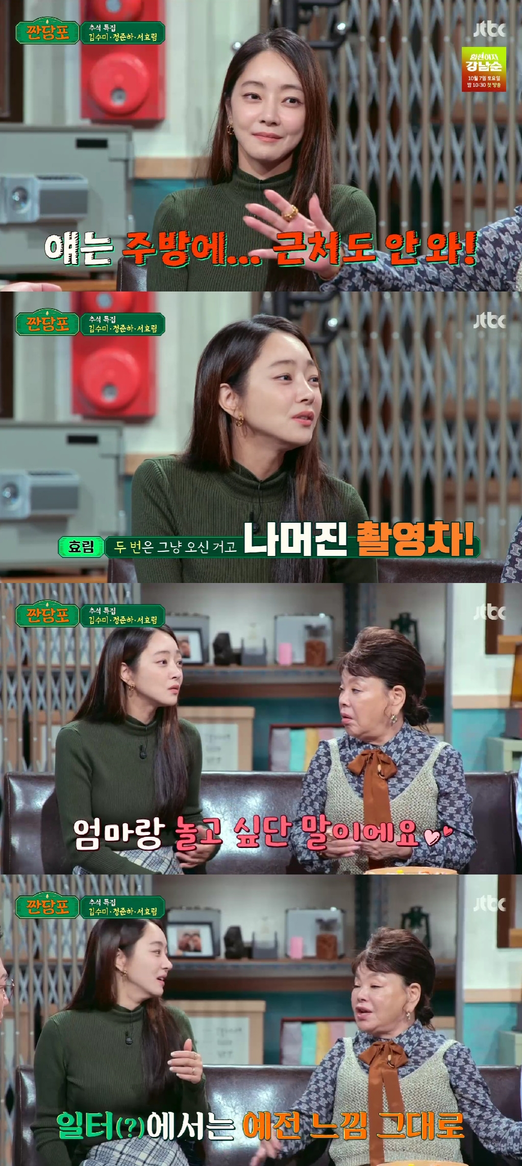이어 김수미는 "결혼한 지 4년 됐는데 아들 집에 4번 갔다. 먼저 시집간 딸이 '엄마도 웬만하면 오빠 집에 가지 마'라고 하더라"라고 했고, 서효림은 "근데 저는 오히려 서운하다. 저는 엄마랑 놀고 싶다. 결혼 전에 매일 통화하고, 많이 놀았다. 근데 이제는 제가 전화하면 잘 안 받는다. 호텔 마사지 이용권이 생겨서 같이 가자고 했는데 '효림아 내가 진짜 불편해'라고 하시더라"라고 전했다.