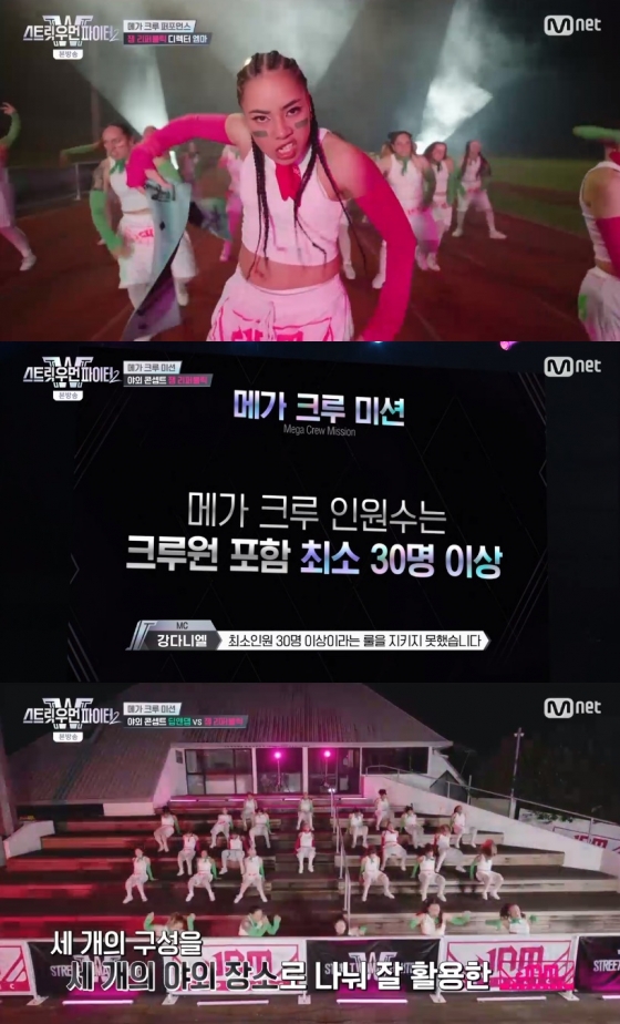 5일 방송된 Mnet 예능 프로그램 '스트릿 우먼 파이터2' 5화에서는 메가 인원을 동원해 최상의 퍼포먼스를 완성해야 하는 메가 크루 미션이 진행됐다.