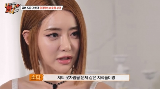 이날 방송에서 DJ 소다는 "저는 평상시랑 똑같이 무대 마지막에 노래를 부르면서 내려가는 퍼포먼스를 하고 있었다. 근데 갑자기 여러 명이 제 가슴을 만졌다"며 일본에서 겪은 사건에 대해 입을 열었다.