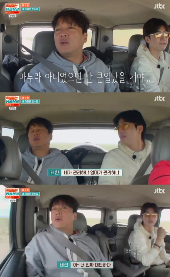 차태현은 목적지로 향하던 중 강훈에 "통장 얼마있냐"고 뜬금없이 질문을 건넸다. 이에 강훈은 "진짜 말하는 거냐. 저는 돈을 잘 안 써서 XX정도 있다"고 답했다. 강훈이 밝힌 재산은 방송에서 음소거 처리됐다.
