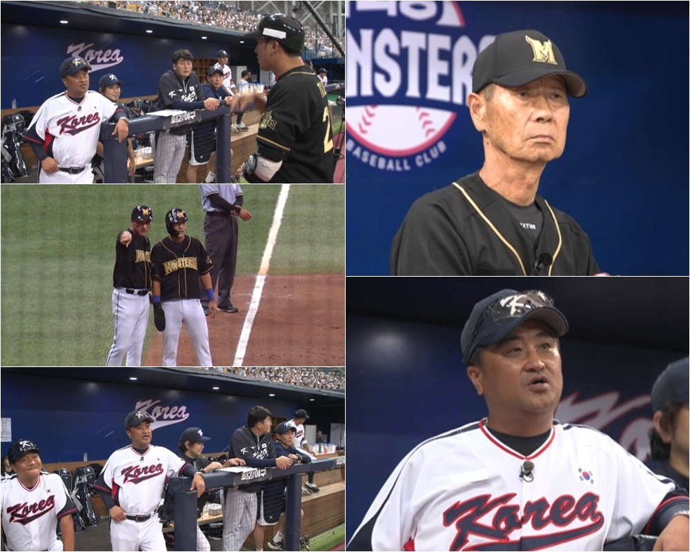 최강 몬스터즈 이택근 코치가 U-18 야구 국가대표팀 이영복 감독과 한 치의 양보 없는 신경전을 벌인다.