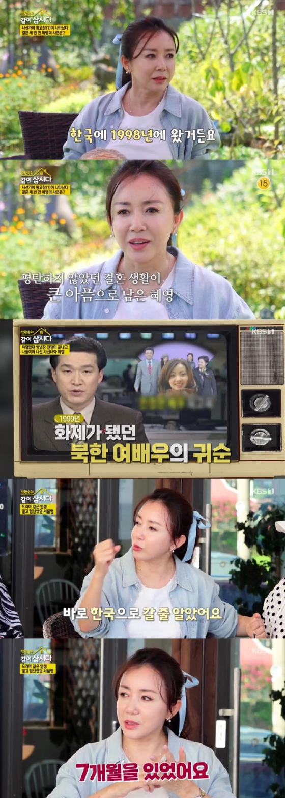 1일 방송된 KBS 1TV '박원숙의 같이 삽시다'에는 1호 귀순 배우 김혜영이 출연해 다양한 이야기를 나눴다.