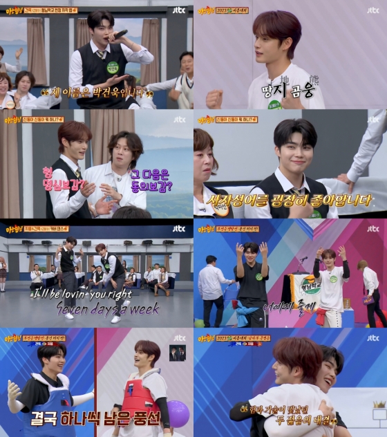 두 멤버는 주어진 상황극에 과몰입하며 형님들과 웃음 '케미'를 이뤘다. 김지웅은 센스 있는 애드리브를 뽐냈고, 박건욱은 사자성어 실력으로 모두를 놀라게 했다.