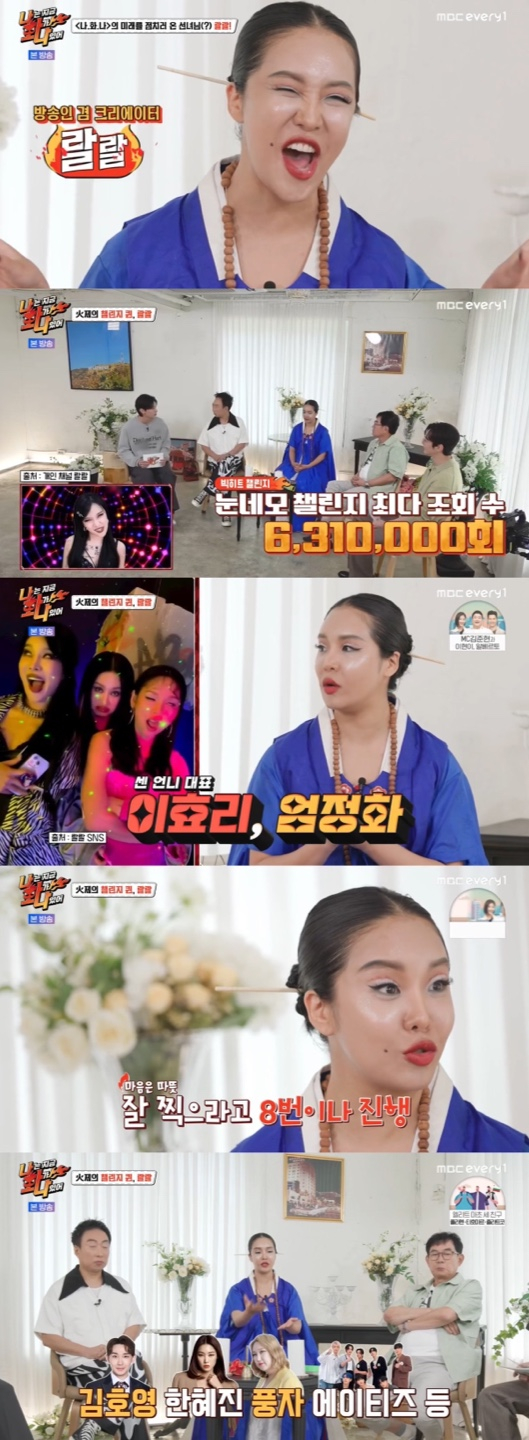이날 MC 덱스는 조회 수 600만 회가 넘으며 화제가 된 네모눈 챌린지에 대해 언급했다. 이에 랄랄은 "처음 신곡 나온 날 찍은 게 이효리 언니와 엄정화 언니다. 챌린지 잘 찍으라고 8번이나 계속해서 찍어줬다"라고 전하며 미담을 전했다.