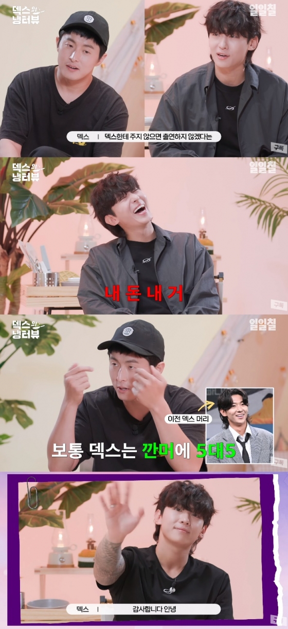 이후 기안84는 오랜만에 만난 덱스의 헤어 스타일 변화에 관심을 보였다. 이에 덱스는 "제가 '냉터뷰'할 때 만큼은 힘을 주고 나온다"고 설명했다. 그러자 기안84는 "근데 이게 훨씬 낫다. 원래 이마를 깐 다음에 5대 5 가르마였는데. 일본 호스트느낌이었다"고 너스레를 떨어 웃음을 안겼다.