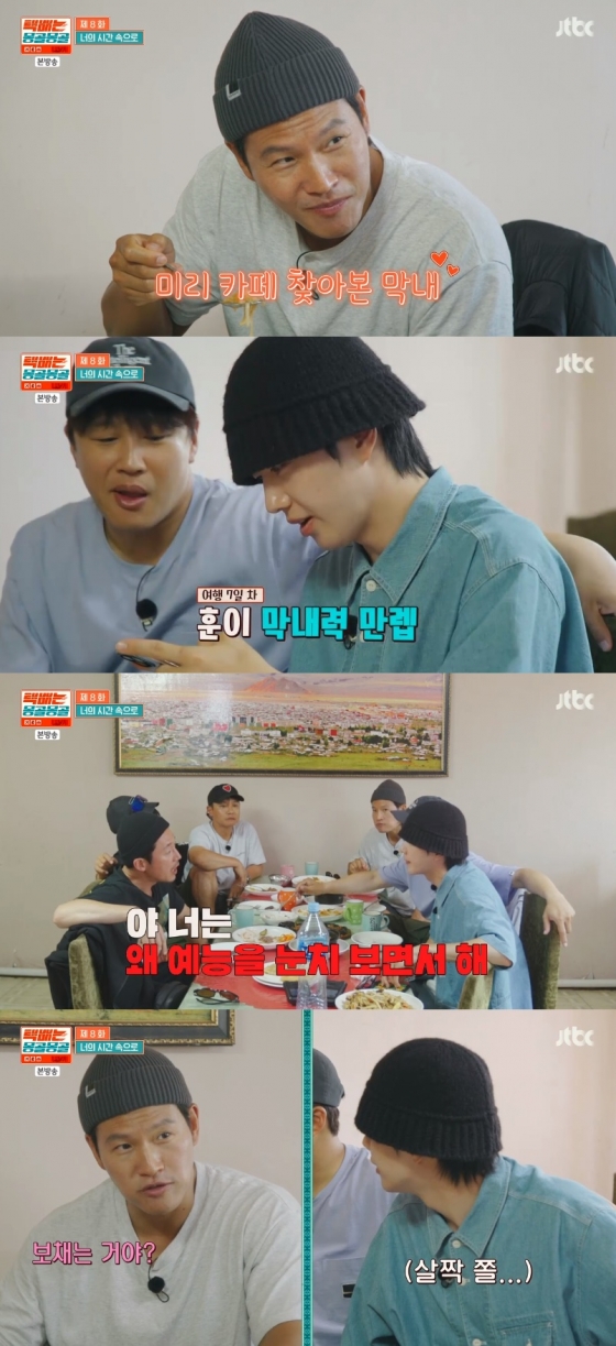 6일 방송된 JTBC 예능프로그램 '택배는 몽골몽골' 8화에서는 '용띠 절친' 김종국·장혁·차태현·홍경민·홍경인과 배우 강훈이 택배 여행 일주일 만에 달콤한 휴식을 취하는 모습이 담겼다.