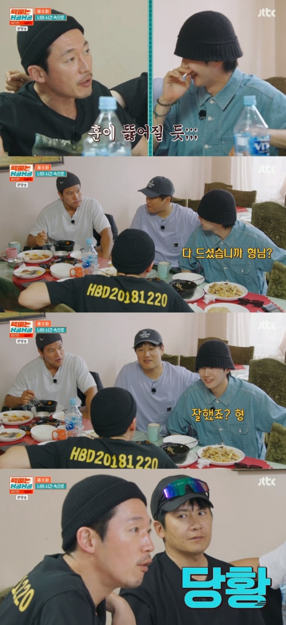 이후 강훈이 "다 드셨습니까 형님?"이라고 질문을 건네자, 김종국은 "지금 보채는 거냐"며 강훈을 노려봤다. 이에 강훈은 "예, 맞죠. 그런 뜻이죠"라면서도, 장혁에 "잘했죠 형님"이라고 확인을 받아내 보는 이들을 폭소케 했다.