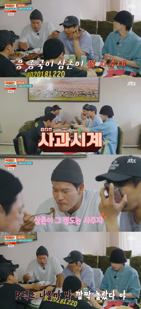 6일 방송된 JTBC 예능프로그램 '택배는 몽골몽골' 8화에서는 '용띠 절친' 김종국·장혁·차태현·홍경민·홍경인과 배우 강훈이 택배 여행 일주일 만에 달콤한 휴식을 취하는 모습이 담겼다.