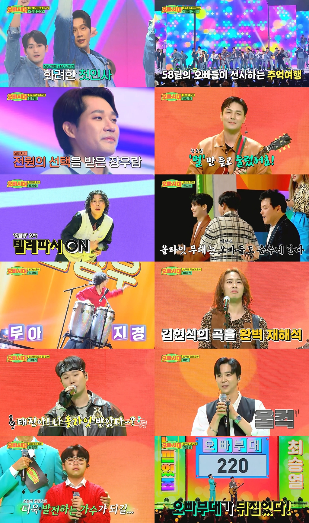 이날 방송은 MC 지현우와 약 7개월간 진행된 치열한 예선을 뚫고 올라온 58팀의 오빠들이 선보이는 '젊은 그대' 무대로 시작됐다. 단체로 롤러스케이트를 타고 춤과 노래를 소화하는 역대급 스케일의 오프닝 쇼가 시작부터 시청자들의 눈과 귀를 사로잡았다.