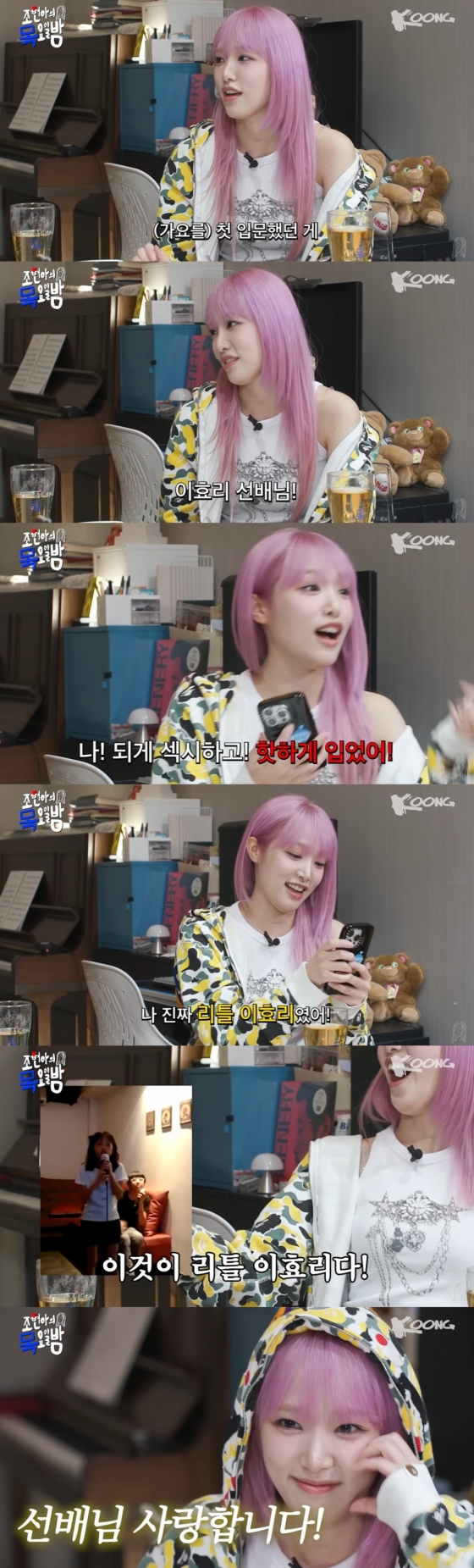 이어 최예나는 "애기 때 다들 동요 듣지 않나. 난 달랐다. 난 K팝을 들었다. 나 되게 섹시하고 핫하게 입었다"라며 자신을 '리틀 이효리'라고 불렀다.