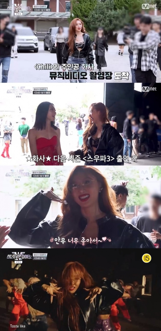 리아킴은 "어제 같이 연습 했는데 '스우파' 다음 시즌에 출연하셔도 될 것 같은 느낌을 받았다"며 화사의 춤 실력을 극찬했다.