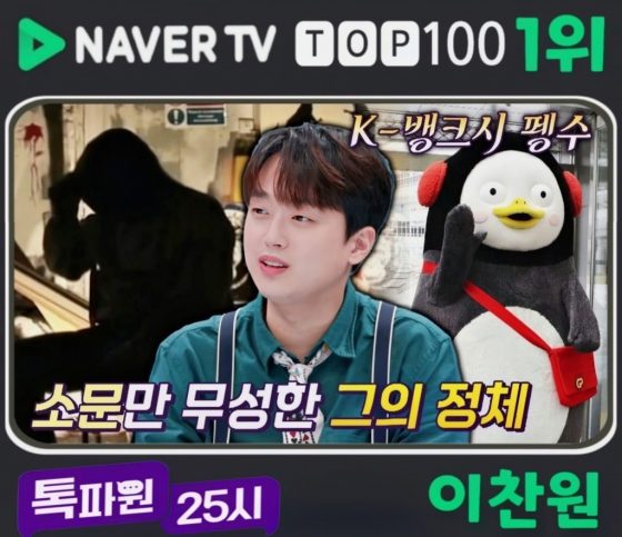 지난 10월 9일 JTBC '톡파원 25시' 방송 후 공개된 '도대체 누구? 이찬원도 인정한 한국의 뱅크시(?)= 펭수' 영상은 10일 오전 9시부터 오후 1시까지 네이버 TV 1위를 기록했다.