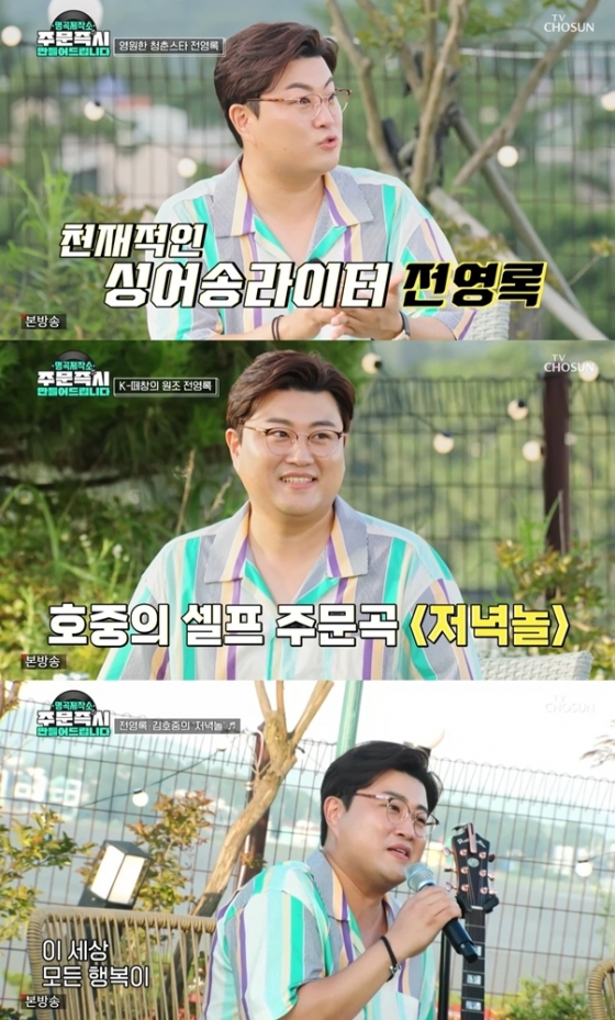 지난 15일 밤 9시 10분 TV CHOSUN '명곡제작소-주문 즉시 만들어 드립니다'(이하 '명곡제작소')가 방송된 가운데, 이날 김호중은 게스트로 대선배 전영록이 등장하자 대선배를 향한 존경심을 드러냈다.