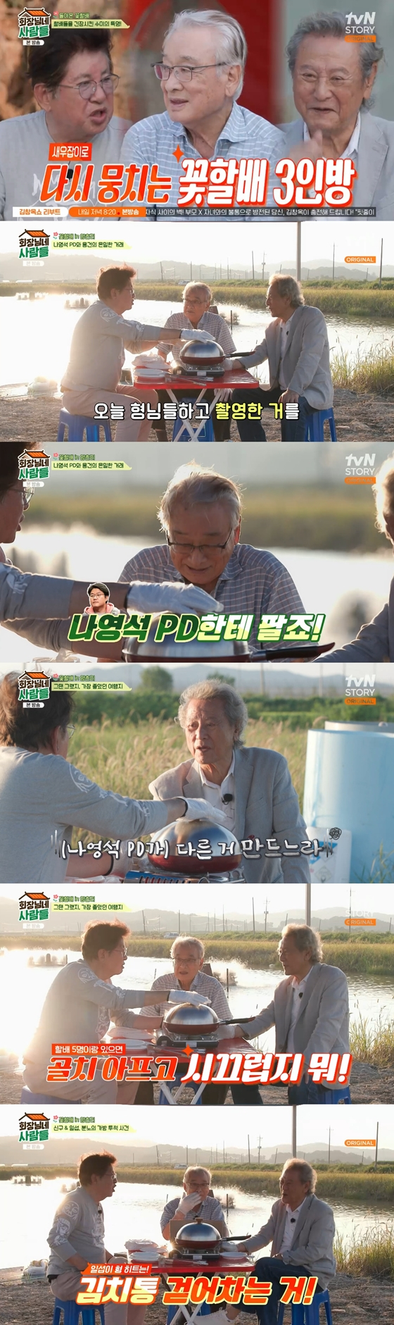 또한 세 사람은 백일섭이 '꽃할배' 촬영 때 가방 투척 사건도 언급했다. 당시 건강이 좋지 않았던 백일섭이 김치통을 걷어 찬 사건이었다.
