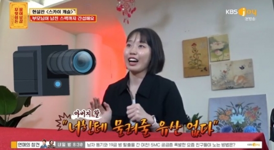 또한 그는 "아버지께서 본가로 불러서 갔더니 캠코더를 틀어놓고 '너한테 물려줄 유산이 없다, 의대 진학을 위해 지불했던 양육비의 절반을 청구하겠다'고 하더라"며 친부에게 협박을 받았다고 밝혔다.이에 서장훈은 "부모님한테 얘기해봐야 안 들을 것 같아서 남자 친구한테 이야기하겠다. 남자친구가 지금 돈도 잘 벌고 인물도 좋다고 하는데 빨리 헤어졌으면 좋겠다. 이런 집에 결혼 안 했으면 좋겠다. 도대체 뭐가 아쉬워서 이런 수모를 당하면서 들어가야 하냐"고 돌직구를 날렸다.