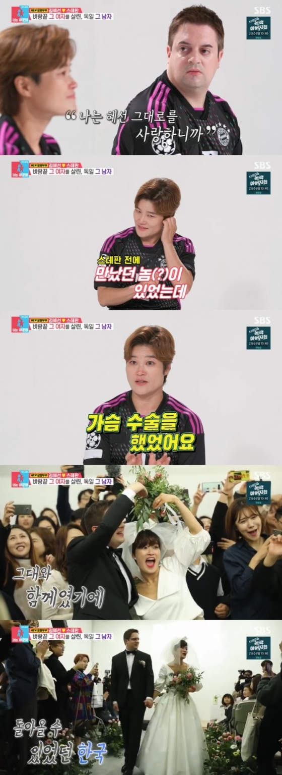 이어 그는 "그래서 사랑을 받고 싶은 마음이 커서 가슴 수술을 한적 있다. 그때 수술 후 잘못된 사랑이라는 걸 깨달았다"며 "헤어진 후 독일생활을 하면서 이상하게 가슴 한쪽이 아팠다. 스테판을 만나면서 문제가 발생되니까 어떻게 할지 고민을 했다. 남편한테 만난 지 한 달 됐을 때 이야기를 했다"고 설명했다.