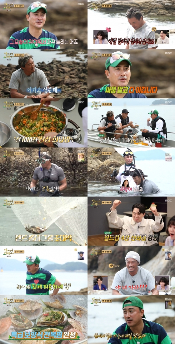 크고 작은 말싸움 속에서도 조개 국밥, 전복찜, 거북손 무침, 용치놀래기 튀김 등 푸짐한 밥상이 완성됐다. 시원한 국물로 속을 풀어주는 조개 국밥부터, 매콤한 양념이 매력적인 거북손 무침까지 완벽한 코스 요리 먹방이 스튜디오에서 이를 지켜보던 붐, 현주엽, 허경환, 강미나를 괴롭게 했다. 그중에서도 안정환은 전복찜을 먹고 "지금까지 섬에서 먹은 것 중 제일 맛있다"고 평가해 군침을 자극했다.