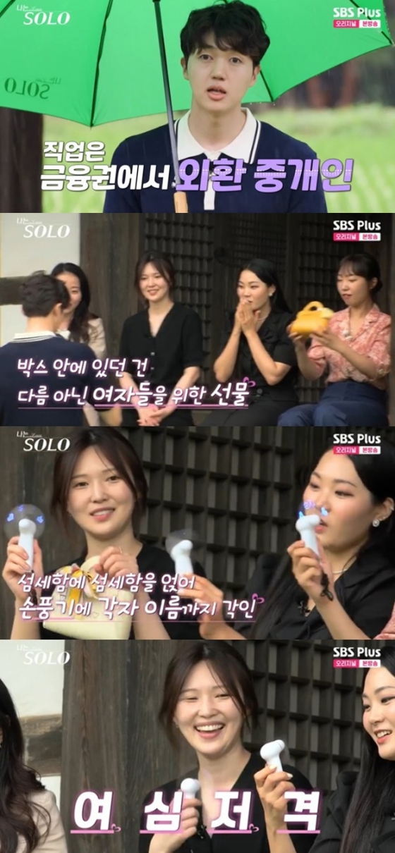 그는 자신의 장점으로 파워 계획형의 특성을 꼽으며 "데이트할 때 몸만 오시면 된다"는 멘트로 호감을 높였다. 이후 영식은 "작은 걸 준비했다"며 가방과 각자 이름이 각인된 손 선풍기를 여성 출연자들에 선물했다. 선물을 받은 여성 출연자들은 "여심 저격이다"라며 영식의 센스에 크게 감동해 환호했다.