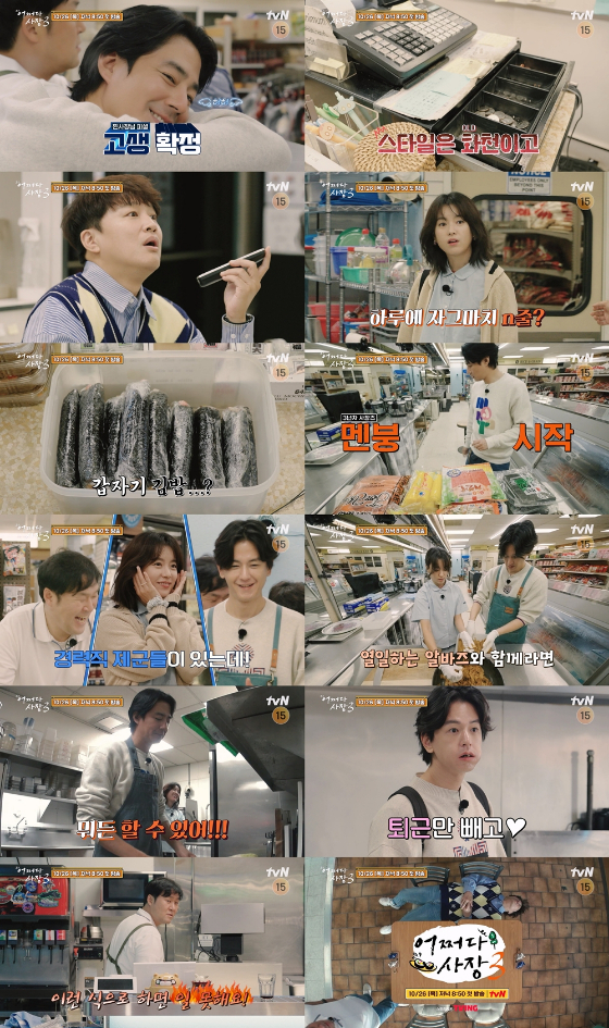 tvN '어쩌다 사장3'(연출 류호진, 윤인회)가 오는 26일 오후 8시 40분에 첫 방송된다. 방송에 앞서 어쩌다 미국 한인 마트를 운영하게 된 차태현, 조인성과 '경력직 알바즈' 한효주, 임주환, 윤경호가 오픈 전부터 위기에 빠진 모습이 담긴 1회 예고 영상이 공개됐다.