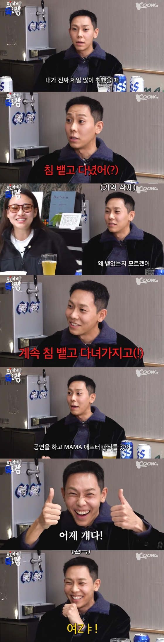 이어 "그러고 나서 공항에 갔는데 많은 가수들 매니저분들이 나한테 와서 손가락으로 나를 가리키고 웃더라. 쌍엄지도 들더라"라며 "나는 기억이 없었다. '저 혹시 어제 뭐했나요?'라고 물으니 '어제 너무 좋았어. 정우성 씨랑 춤추고'라고 하더라"라고 말해 웃음을 자아냈다.