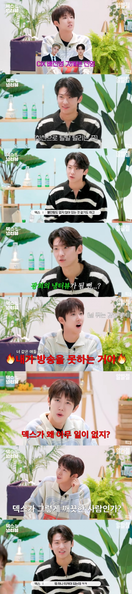 19일 유튜브 채널 '일일칠 - 117'에는 '[덱스의 냉터뷰] 아아앆!!! 온 세상이 덱스덱쓰윾!!! 덱스 인생 망치러 온 구원자 l EP.10 광희 편'이란 제목으로 영상이 올라왔다.