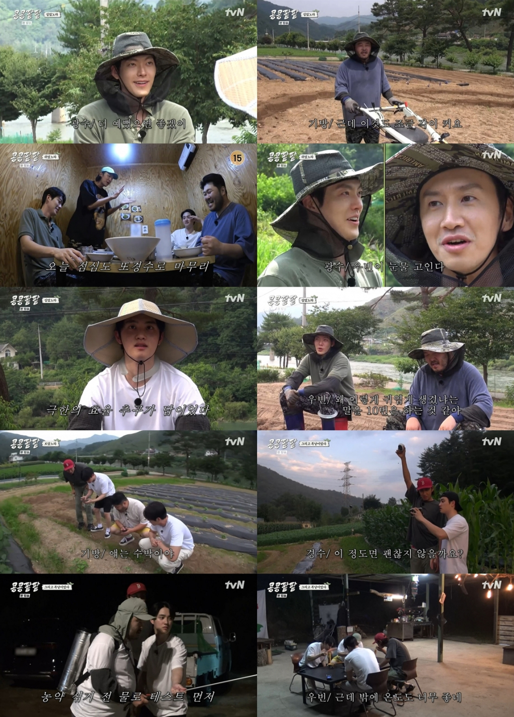 초보 농사꾼이라 가능한 저녁 밭일 역시 흥미로웠다. 이광수와 도경수는 밭을 지켜볼 수 있는 CCTV를 설치했고, 김우빈과 김기방은 잡초를 뽑으며 분업화된 시스템으로 눈길을 끌었다.