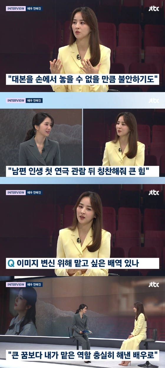 21일 방송된 JTBC '뉴스룸'에는 연극 '바닷마을 다이어리'로 관객과 만나고 있는 한혜진이 출연해 이야기를 나눴다.