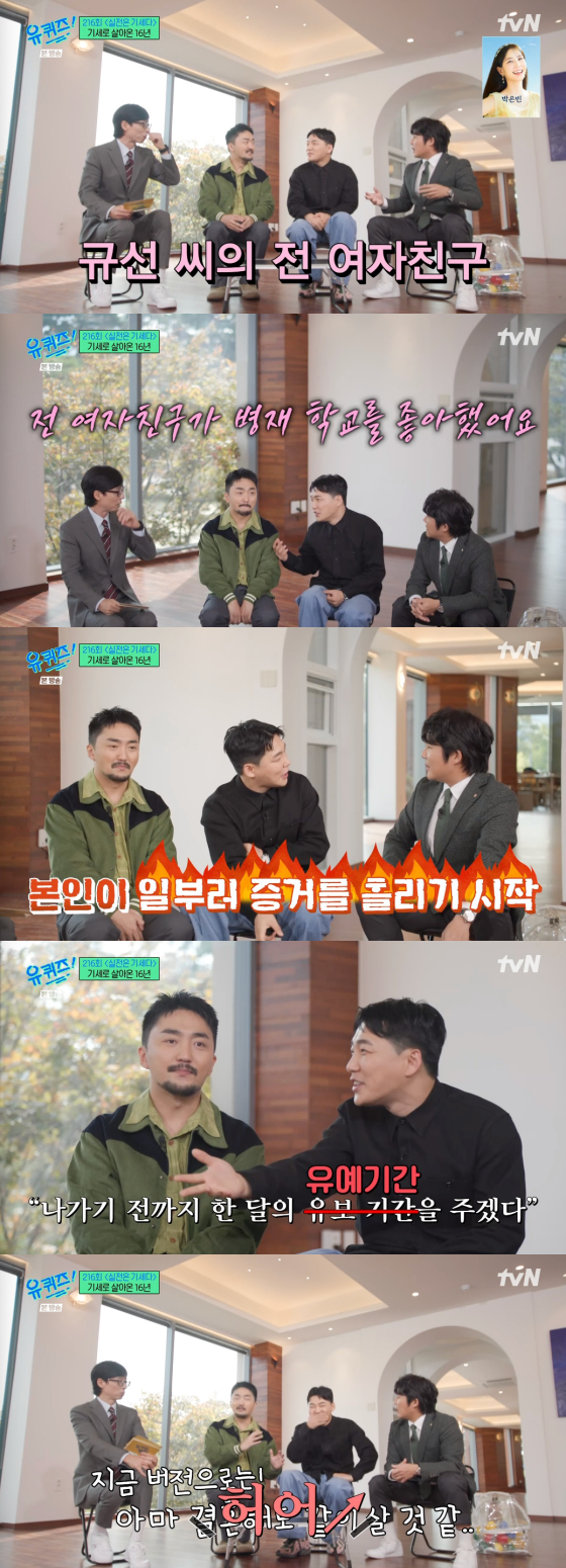 유병재는 "어느 날 규선 형이 제 방에 들어오더니 여자친구가 바람이 난 것 같다더라"며 비하인드를 공개했다. 유규선은 이에 "병재가 '형이 이걸 내버려두면 형 부모님도 행복하고 우리 모두가 행복할 수 있다'더라"고 덧붙여 폭소를 유발했다. 유규선은 끝까지 여자친구의 외도를 모른 척 했지만 결국 새 남자친구와 삼자대면 후 집을 나왔다고 밝혀 웃음을 더했다.