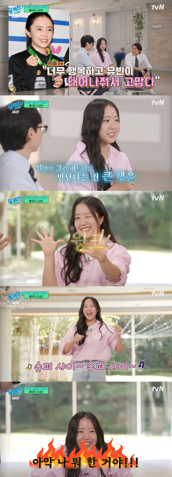'유퀴즈' 탁구 국가대표 신유빈이 뉴진스의 '슈퍼 사이' 춤을 공개했다.