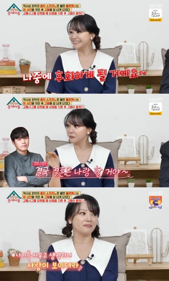 그러면서 "어느 날 제가 너무 힘들었던 날, 소개팅하면서 울면서 나온 날이 있다. 그때 전화가 와서 받았을 때 나이를 지우고 생각하니 그 사람이 보이더라"며 손준호를 남자로 보기 시작한 계기를 설명했다.