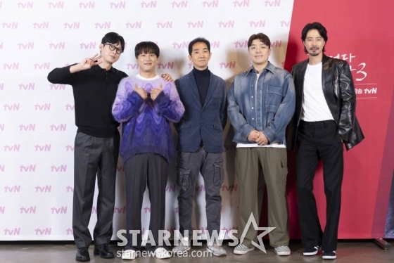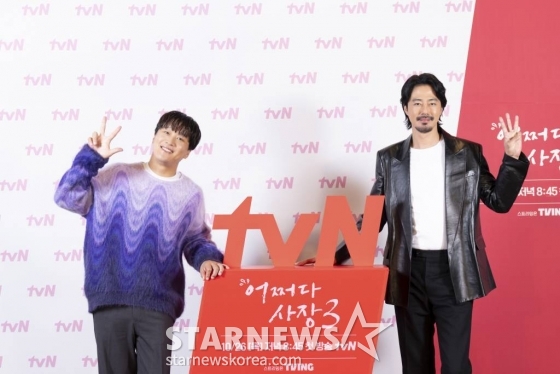 26일 네이버 TV, 티빙 등을 통해 tvN 새 예능 프로그램 '어쩌다 사장3'(연출 류호진·윤인회) 온라인 제작발표회가 진행됐다. 이날 제작발표회에는 '사장' 차태현과 조인성, '경력직 알바생 대표' 박병은, 연출을 맡은 류호진 PD와 윤인회 PD가 참석했다.