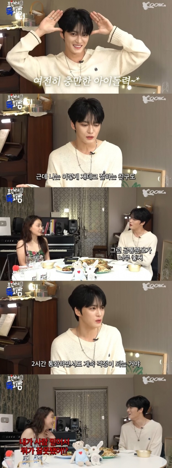 그러자 김재중은 "미래를 예측하며 걱정을 많이 하는 편이다. 현아가 생각보다 빈틈이 많고 완벽하지 않다. 그러니까 걱정되는 거다"라며 의견을 전했다. 그러면서 "얼마 전에도 현아랑 2시간 통화했었다. 2시간 통화하면서도 너무 걱정이 됐다. 얘가 사람을 너무 잘 믿는다"며 엄마 같은 모습으로 잔소리를 쏟아내 웃음을 자아냈다.