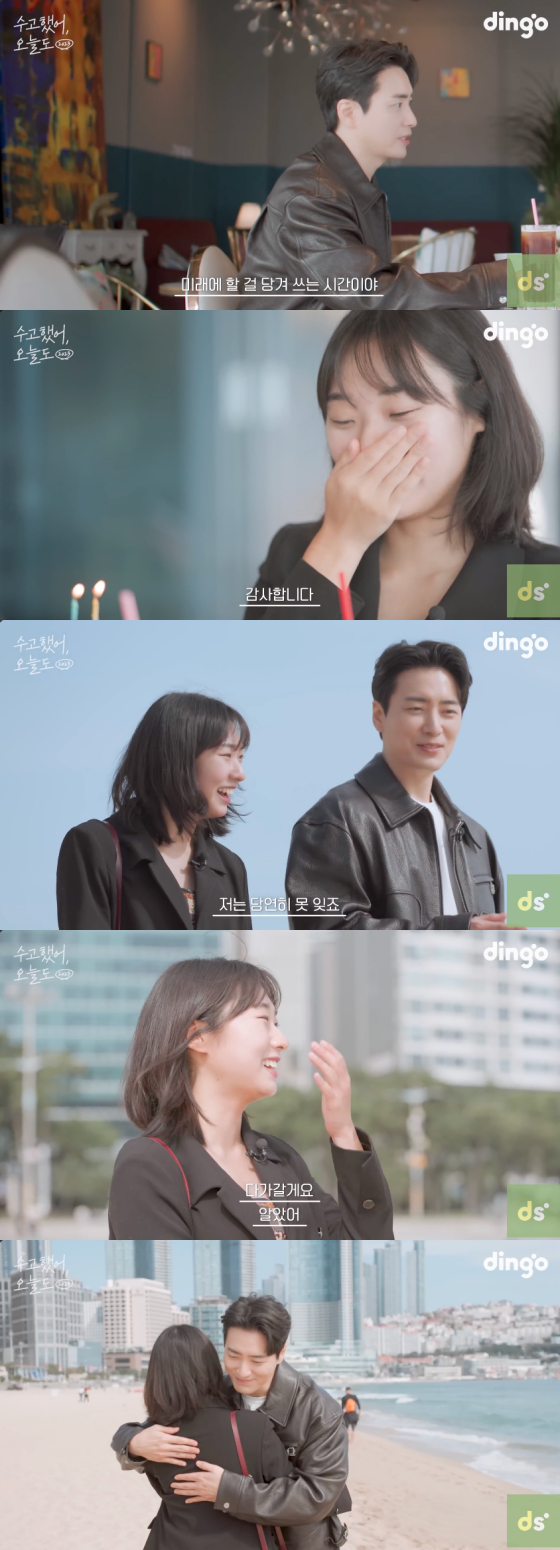 김태경은 영상 말미 "힘들 때 생각하면 또 힘을 낼 수 있을 것 같다"며 감사를 전했다. 이준혁은 이에 "서로 의지하면서, 저 사람도 버티고 있는데 나도 열심히 해야겠다 생각하면 좋을 것 같다. 점점 가까이서 응원해달라. 일하면서 만나자"고 답해 감동을 선사했다.