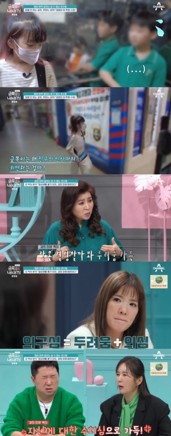 이날 스튜디오에는 초등학교 3학년 딸과 6살 쌍둥이 형제를 키우고 있는 한 부부가 등장했다. 공개된 VCR 영상에서 초등학교 3학년 금쪽이는 사소한 선택도 엄마에게 의지하며 본인의 의사를 제대로 전달하지 못했다. 또 금쪽이는 또래 친구가 인사를 건네도 아무런 반응을 하지 않고 도망치듯 외면하기도 했다.
