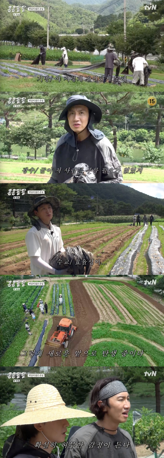 이후 등장한 트랙터 사장님은 "거지처럼 됐네"라며 순식간에 밭 전체를 밀어버렸다. 이광수는 이에 "말리고 싶다. 아무것도 안 한 것처럼 됐다"고, 김우빈은 "경수가 지금 엄청 속상해할 것 같다"며 심란해해 안타까움을 자아냈다.