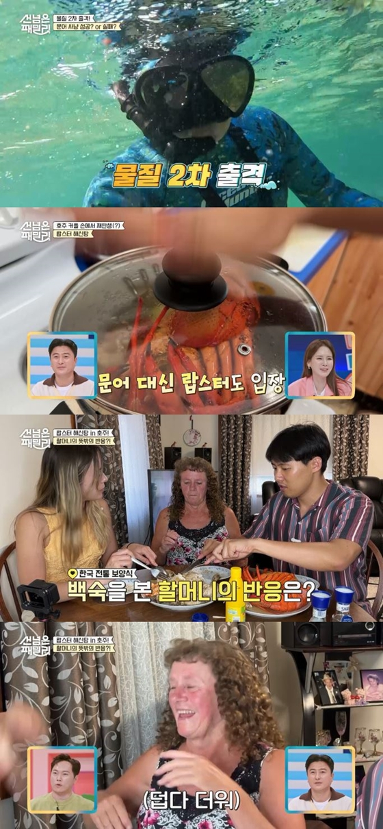 그러나 2차에 걸친 물질에도 문어를 발견할 수 없었고, 바다에 상어가 출몰했다는 알람으로 인해 문어잡이를 일찍 마무리했다. 결국 이들은 문어 대신 시푸드 마켓에서 랍스타를 사, 닭과 함께 푹 삶아 할머니에게 대접했다. 샘 해밍턴은 "호주인들은 물에 끓여 먹는 요리법에 익숙지 않아서, 싫어할 수도 있을 것 같다"고 우려했지만, 다행히 할머니는 백숙을 맛있게 먹었다. 식사 마무리 후엔 리조또 쌀을 이용해 'K-후식' 국룰인 '닭죽'을 만들었다. 할머니는 "닭죽이 제일 맛있었다"는 호평과 함께 땀을 뻘뻘 흘리는 모습으로 '보양 효과'를 입증해, 김정원-케일라와 출연진들을 뿌듯하게 했다.