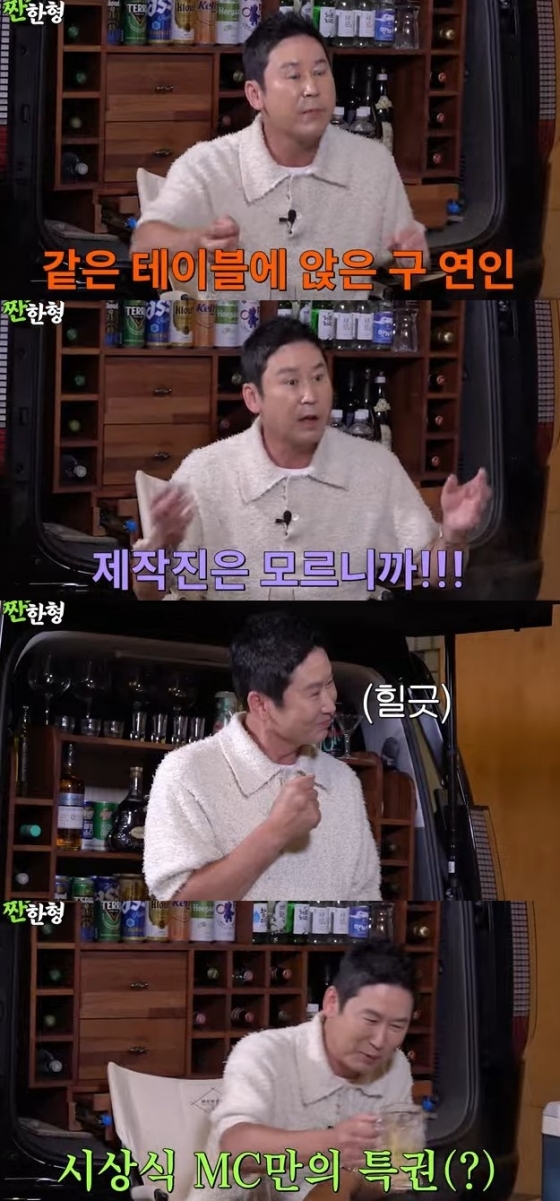 그는 "그리고 시상식 MC를 많이 보면 나만의 재미가 있다. 언론에 알려지지 않고 대중들은 모르지만 옛날에 만났다가 헤어진 (관계들). 제작진들은 모르니까 같은 테이블에 구 연인이 앉아있다. 그럼 지나가면서 계속 본다"며 상황을 재현해 웃음을 자아냈다.