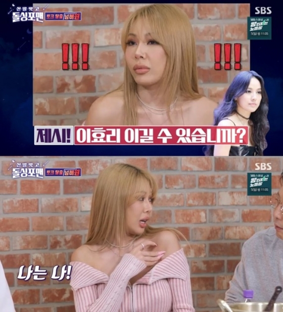 이후 탁재훈이 "레전드 대선배인 이효리를 이길 수 있냐"고 돌발질문을 건네자, 제시는 "나는 나다. 비교하는 게 싫다"며 자신 있게 대답했다.