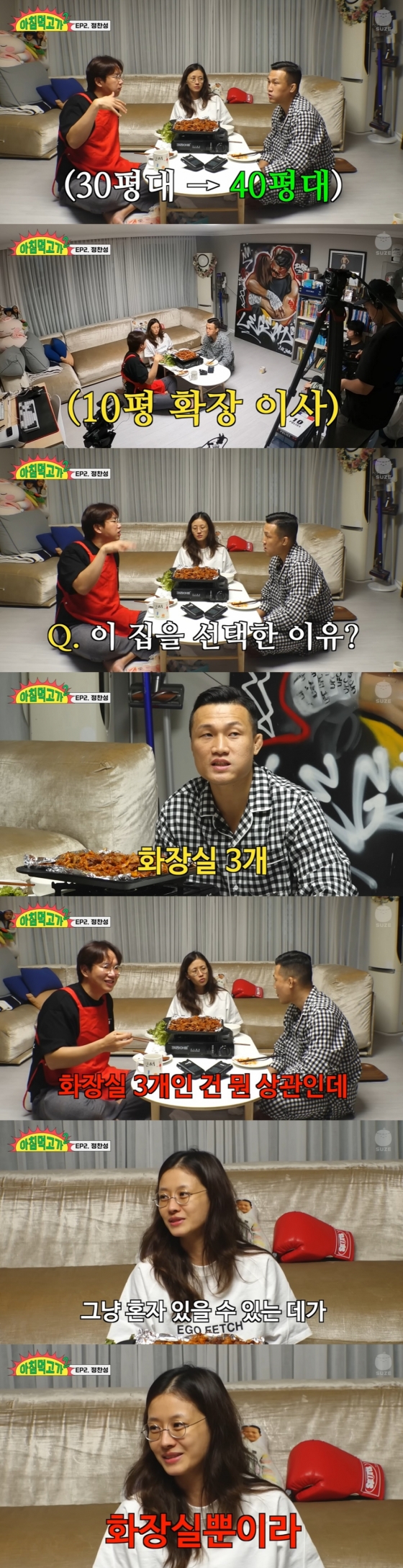 이어 정찬성은 해당 집을 선택한 이유에 대해 "화장실이 3개다. 화장실이 제일 중요하다. 내가 화장실에 오래 있다"라고 이야기했다.