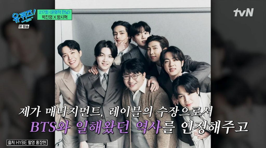 1일 오후 방송된 tvN '유 퀴즈 온 더 블럭'(이하 '유퀴즈')에는 K팝의 거물로 불리는 JYP엔터테인먼트 CCO 박진영, 하이브(HYBE) 의장 방시혁이 게스트로 출연했다.