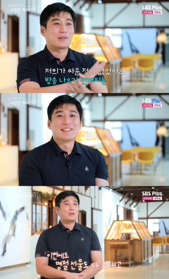 그는 "원래는 싸우지 않았다. 그런데 방송 2회 때부터 싸웠다. 몰입하다 보니까 '영자를 왜 이렇게 사랑했냐?'라고 하더라. 아니라고 해도 '눈빛이 달랐다'라고 하더라. 설명이 안 통했고 애를 많이 먹었다"라며 "이번에도 명절 선물을 다 보냈고 아버님께 점수를 좀 따고 있다"라고 털어놨다.