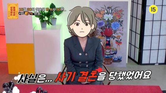그녀는 사기 결혼을 당해 우울증, 대인기피증 등 일상생활이 불가했던 근황을 소개하며 "아이도 없는데 아들이 있다는 소문이 있어 정리하고자 출연했다"고 전했고, 2년 전 유서를 써놨다는 충격적인 이야기도 털어놔 보살들을 안타깝게 했다.