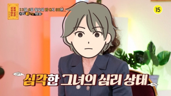 사연자의 밝아진 모습을 흐뭇하게 바라보며 웃음 짓던 이수근과 서장훈은 "요즘 다른 고민은 없냐"고 물었고, 사연자는 "요즘 OOOO가 자기 말을 잘 안 들어주는 게 고민"이라고 한탄하며 의외의 고민을 털어놓았다.