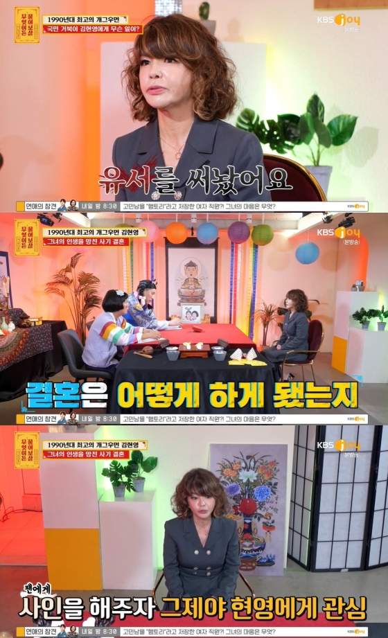 6일 방송된 KBS Joy '무엇이든 물어보살'에서는 김현영이 게스트로 출연했다.