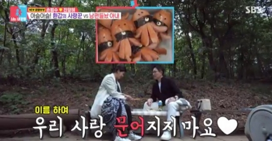 이어 손범수는 "플러팅이란 말 들어봤냐"며 "꼬시는 거다. 이게 플러팅 김밥이다. 내가 당신의 마을을 사로잡는 거다. 소시지를 정성들여서 모양을 만들었다. '우리 사랑 문어지지 마요'"라고 설명해 진양혜를 감동케 했다. 손범수는 진양혜가 좋아하는 모습에 "이제 끝났다"며 자신감을 내비쳐 웃음을 자아냈다.