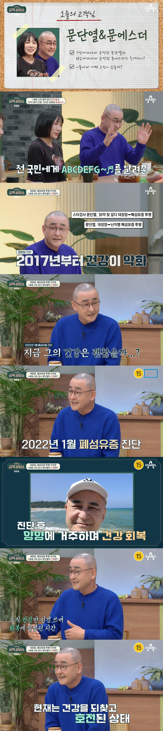 이어 문단열은 근황을 전했다. 특히 그는 2022년 1월 폐섬유증 진단을 받았던 것을 MC들이 걱정하자 호전됐다고 전했다.