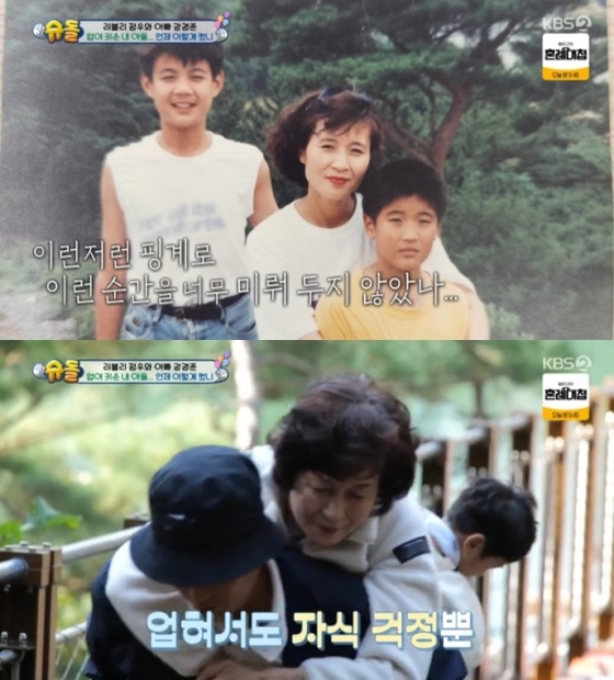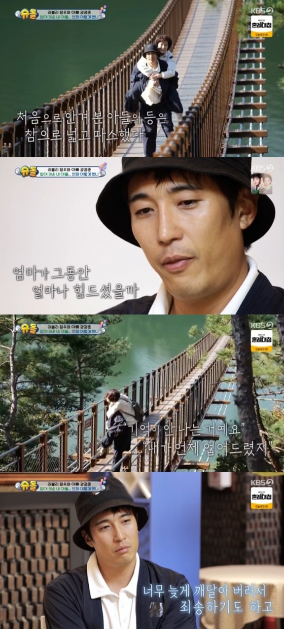 배우 강경준이 출렁다리에서 어머니를 등에 업고 눈시울을 붉혔다.